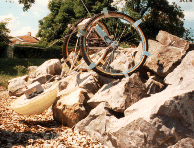 With climbing cleats mounted on its wheels, Pemex-BE can climb irregular slopes of 20° to 30°. It can also climb stairs. The wheels go first when climbing to prevent the sensor package leaving the ground.