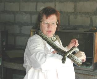 | Roxie and friend at the crocodile ranch. The snake is an African Rock Python (Python sebae). |
