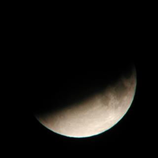 No film or digital image sensor has the dynamic range and logarithmic response of the human eye. Observing the Moon visually during the partial eclipse phase, the eclipsed portion of the Moon's disc was clearly visible to the eye from the time the Moon was about one quarter eclipsed all the way to totality, and lunar features on the eclipsed part were clearly visible in binocular views. An exposure long enough to show the eclipsed disc, however, grossly overexposed the uneclipsed portion (which, after all, was just as bright as the penumbrally eclipsed disc before the start of the umbral phase), causing it to bleed into the rest of the image. All of the partial eclipse photos below were exposed correctly for the illuminated portion and do not show the eclipsed part of the disc except for moments just before and after totality.