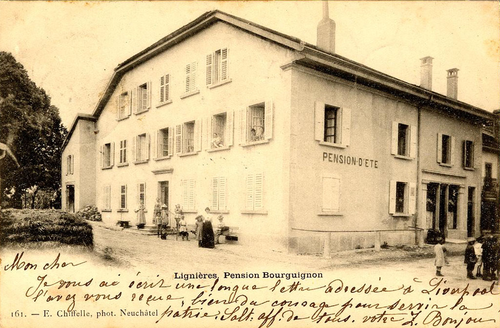 The historical photograph is courtesy of M. Werner Löffel of Lignières, who kindly contributed images of his post card collection to the archives of the Fondation de l'Hôtel de Commune de Lignières.